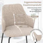 - Ergonomiška valgomojo kėdė su patogiu, lenktu atlošu, plačia sėdyne ir porankiais.