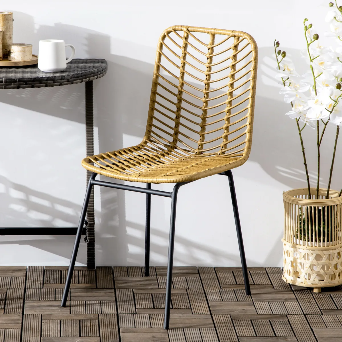 Pasirinkite mūsų 2 valgomojo kėdžių rinkinį iš HOMCOM, kad sukurtumėte madą savo namuose. Valgomojo kėdės sėdynė ir atlošas yra pagaminti iš rotango ir sukuria madingą boho išvaizdą. Plieninės kojelės suteikia kėdei stabilų stovą. Dėl berankio dizaino kėdes galima lengvai laikyti po stalu. Atnaujinkite savo valgomąjį su šiomis stilingomis dviejų dalių valgomojo kėdėmis.