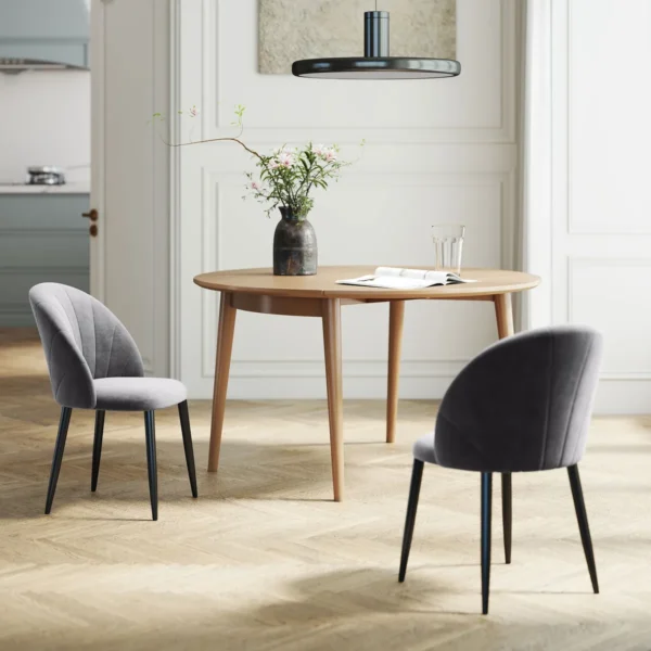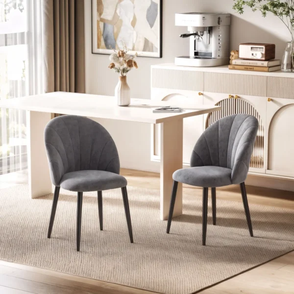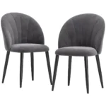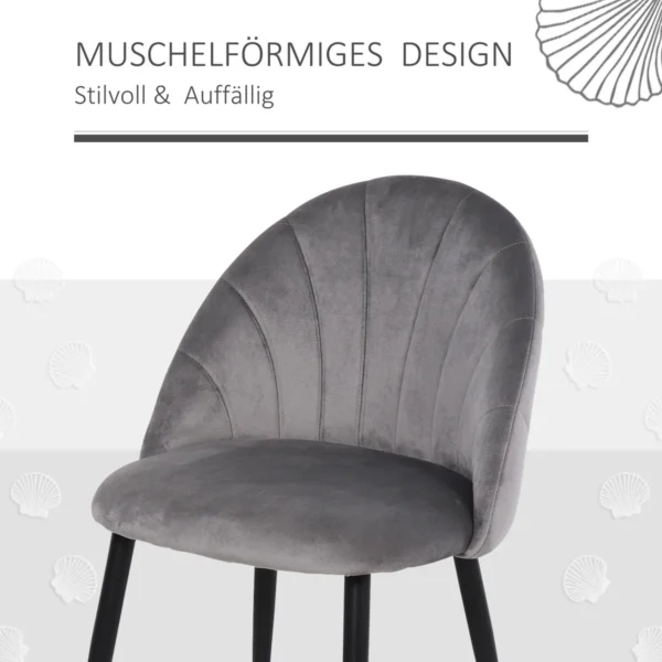 Dėl aptakių linijų ir unikalaus korpuso dizaino šis HOMCOM kėdžių rinkinys puikiai papildys bet kurį kambarį. Ypač valgomajam ar svetainei. Storai paminkštinta sėdynės pagalvė ir minkštas atlošas užtikrina puikią sėdėjimo patirtį. Aksominės išvaizdos forma ir medžiaga suteikia šioms kėdėms elegantiško žavesio.