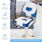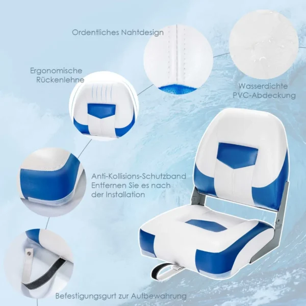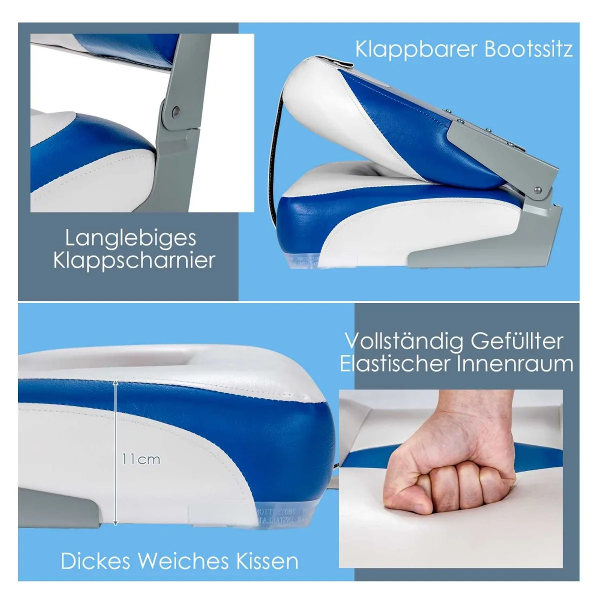 - Dviejų sėdynių rinkinys su mėlynos ir baltos spalvų deriniu, tinkantis įvairioms valtims.