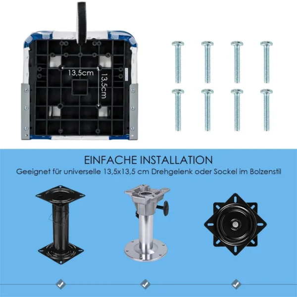 Rinkinys iš 2 valties sėdynių 50x42x52 cm baltos ir mėlynos spalvos – praktiškas sprendimas įvairių tipų valtims. Šios sėdynės yra patogios, atsparios vandeniui ir lengvai montuojamos ant standartinių pagrindų. Tinka laivų, katerių ir kitų vandens transporto priemonių įrengimui.