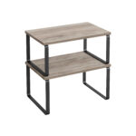 Praturtinkite savo virtuvės interjerą su šiuo elegantišku ir funkcionaliu lentynų rinkiniu. Šios dvi lentynos, derinančios rašalo juodai pilkai margą metalą su šviesiai rudos spalvos medžiu, suteiks jūsų erdvei modernumo ir praktiškumo.