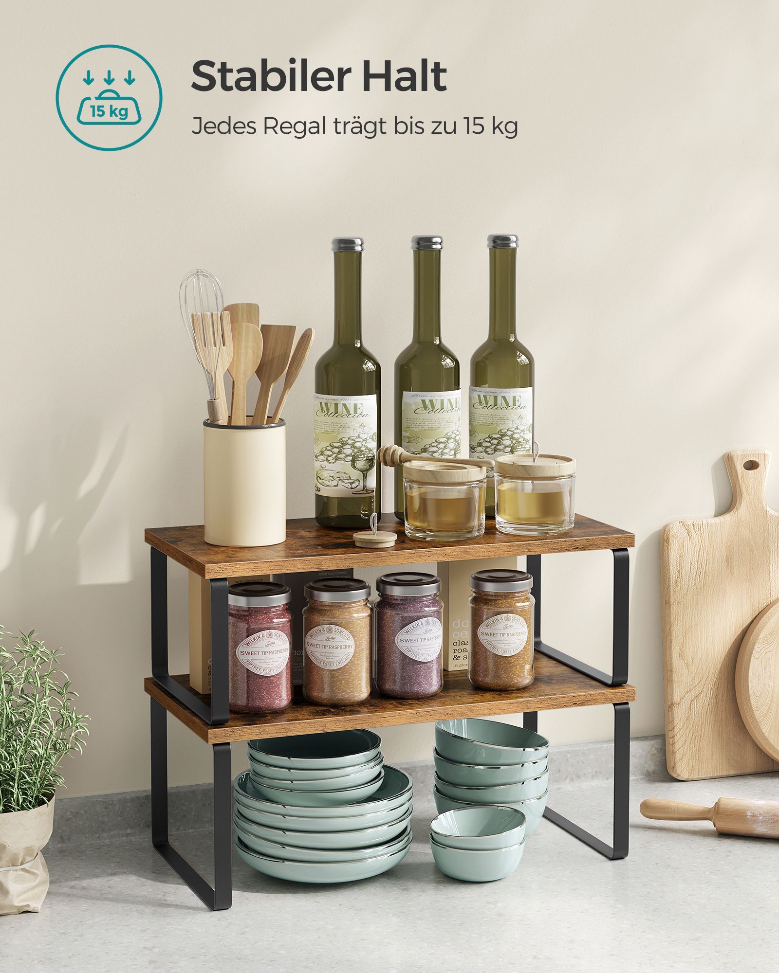 Praturtinkite savo virtuvės interjerą su šiuo elegantišku ir funkcionaliu lentynų rinkiniu. Šios dvi lentynos, derinančios rašalo juodą ir vintažinę rudą spalvas, suteiks jūsų erdvei modernų ir stilingą akcentą. Pagamintos iš aukštos kokybės metalo ir medžio, jos ne tik atrodo puikiai, bet ir yra itin patvarios.