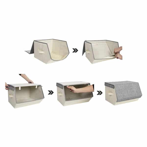 SONGMICS daiktadėžės siūlo protingus saugojimo sprendimus, padedančius sukurti daugiau vietos mažose erdvėse, tokiose kaip spintos, lentynos ir pan. Su metaliniu žiedu ir Velcro užsegimu užpakalinėje dalyje, šios organizatorių dėžutės nesideformuoja net esant didelei apkrovai. Atlenkiamas dangtelis su magnetiniu užsegimu leidžia lengvai išimti daiktus. Pilkos ir smėlio spalvos derinys tinka tiek jaunam, tiek senam. Šiose dėžėse galėsite puikiai sutalpinti savo kasdienius poreikius ir laikyti juos lengvai pasiekiamoje vietoje. Ko laukiate? Pirkdami nepasigailėsite.