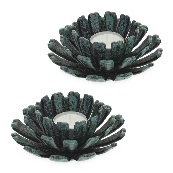 Rinkinys iš 2 žvakidžių 13,5x6cm, tamsiai žalios/juodos spalvos