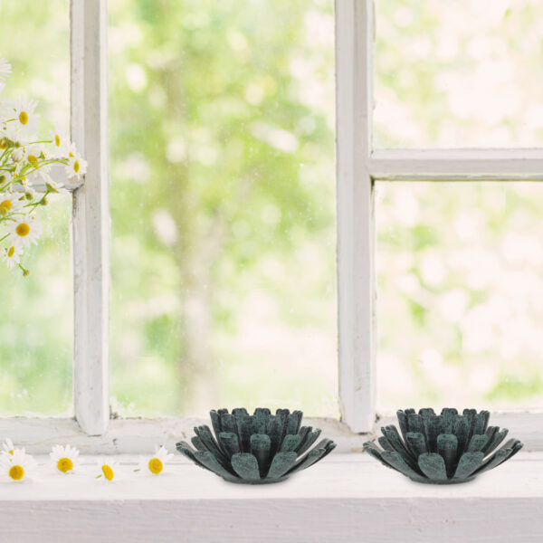 • Unikalus dizainas: Gėlės formos žvakidės, kurios suteikia meditacinę atmosferą.