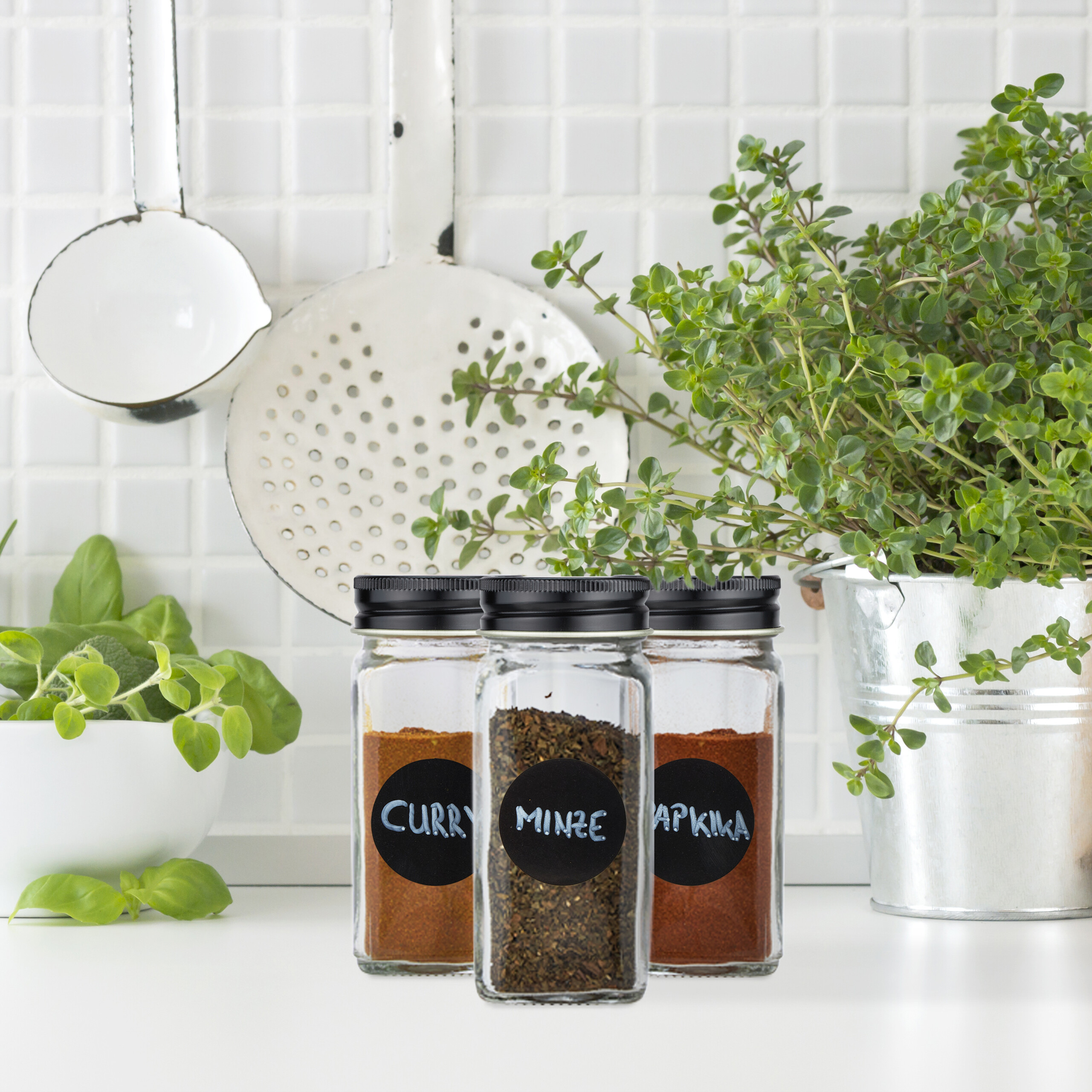 Rinkinys iš 20 skaidrių prieskonių indelių – Juodos spalvos