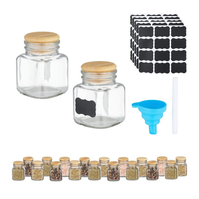 Įneškite tvarkos ir stiliaus į savo virtuvę su šiuo išskirtiniu 20 skaidrių prieskonių indelių rinkiniu. Kiekvienas indelis yra pagamintas iš aukštos kokybės stiklo, o šviesiai rudos spalvos bambukinis dangtelis suteikia natūralumo ir elegancijos pojūtį. Šie indeliai ne tik padės jums organizuoti prieskonius, bet ir taps puikiu interjero akcentu.