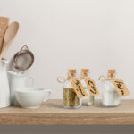 Rinkinyje taip pat rasite pridedamas etiketes, kurios leis jums lengvai pažymėti kiekvieną stiklainį pagal jo turinį. Tai padės greitai ir patogiai rasti reikiamą prieskonį ar ingredientą, kai jo prireiks.
