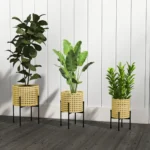 - ✔ 3 skirtingų dydžių gėlių stovų rinkinys, kad būtų galima įvairiapusiškai eksponuoti augalus
