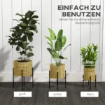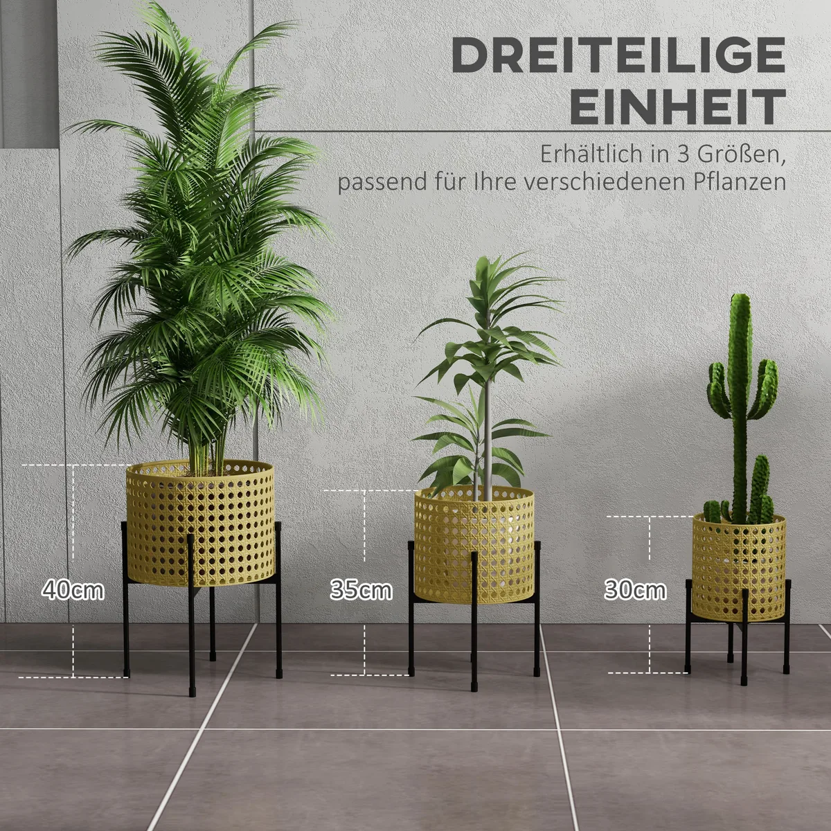 Su šiuo Outsunny gėlių stovo rinkiniu jūsų mėgstamiausi augalai bus pristatomi geriausiai. Rinkinyje yra mažas, vidutinio dydžio ir didelis gėlių stovas, kurie idealiai tinka naudoti kaip harmoningą ansamblį arba atskirai kaip gražius dekoro akcentus. Minimalistinis, nesenstantis dizainas tinka bet kokiam dekoravimo stiliui. Tai suteiks daugiau gyvybės jūsų keturioms sienoms ir suteiks jūsų augalams stilingą karkasą.