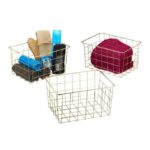 Įneškite stilingą tvarką į savo namus su šiuo išskirtiniu 3 vienetų laikymo krepšelių rinkiniu. Šie auksinės spalvos krepšeliai ne tik padės organizuoti jūsų erdvę, bet ir taps puikiu interjero akcentu.
