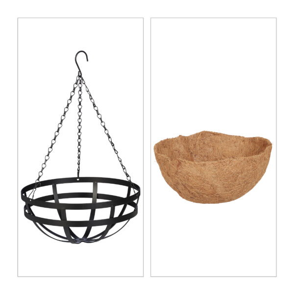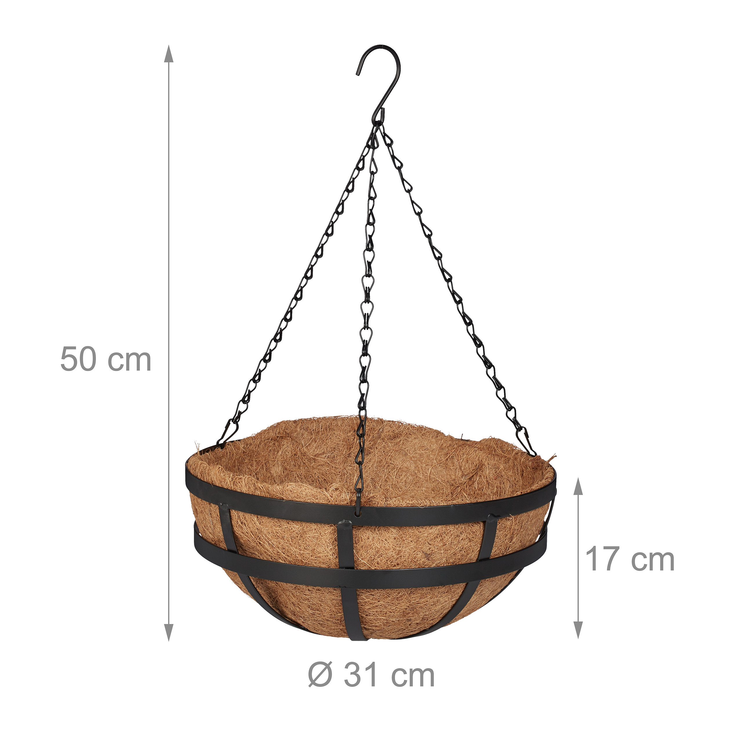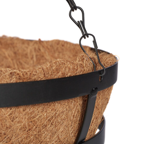 - Aukštos kokybės medžiagos: Juodas metalas ir natūralus kokoso pluošto įklotas užtikrina ilgaamžiškumą ir estetinį patrauklumą.
