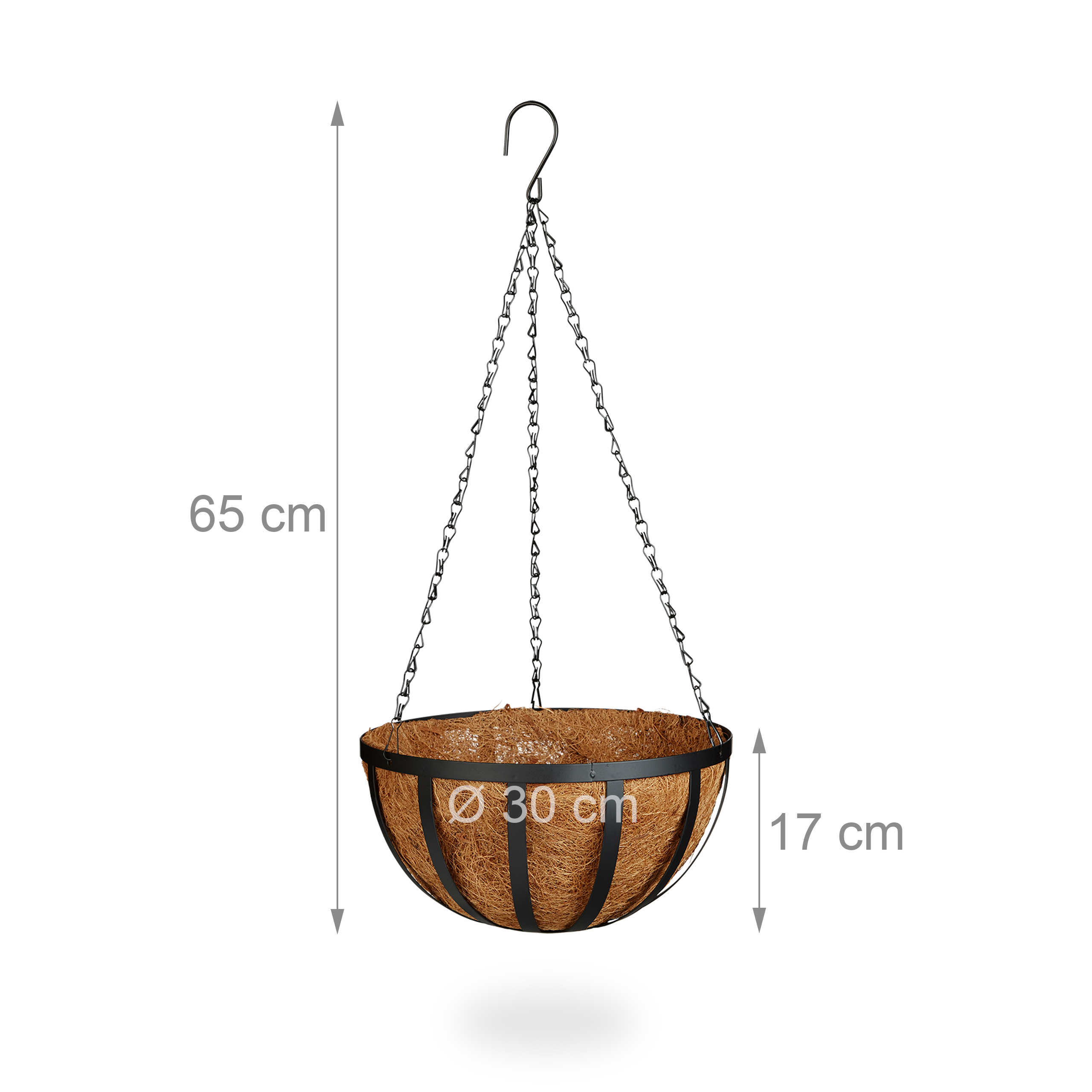 Šie pakabinami vazonai yra puikus pasirinkimas tiek pakabinamiems, tiek vijokliniams augalams. Kiekvieno vazonėlio skersmuo yra 30 cm, todėl jie suteikia pakankamai vietos jūsų augalams klestėti. Grandinės tvirtinimas užtikrina stabilumą ir saugumą, o kokoso riešutų įdėklai padeda išlaikyti drėgmę.
