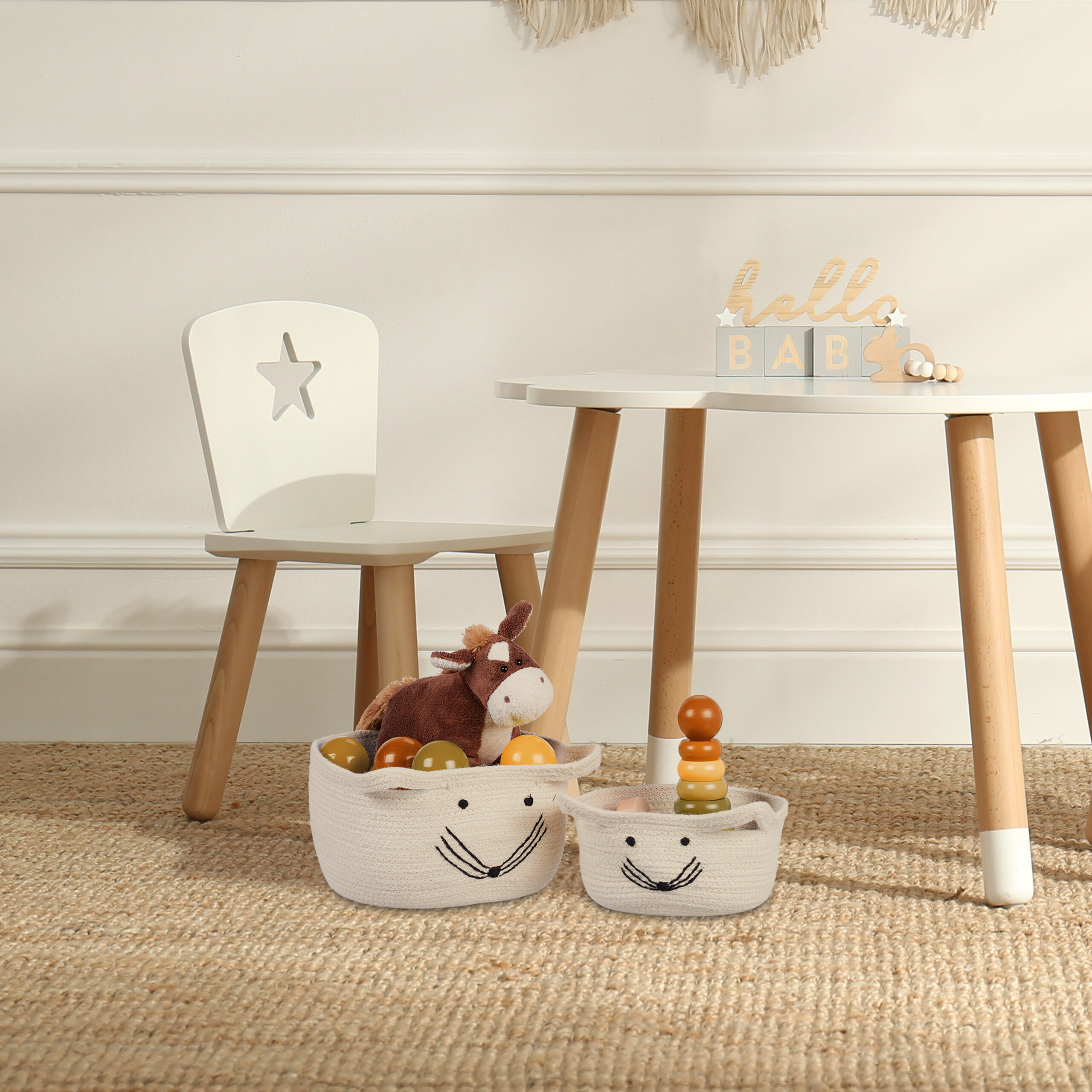 Šis elegantiškas ir funkcionalus krepšelių rinkinys yra puikus pasirinkimas jūsų vaikų kambariui. Austi krepšeliai ne tik padeda palaikyti tvarką, bet ir suteikia kambariui žaismingumo bei stiliaus. Kiekvienas krepšelis yra dekoruotas mielu pelės veidu, kuris patiks tiek vaikams, tiek suaugusiems.