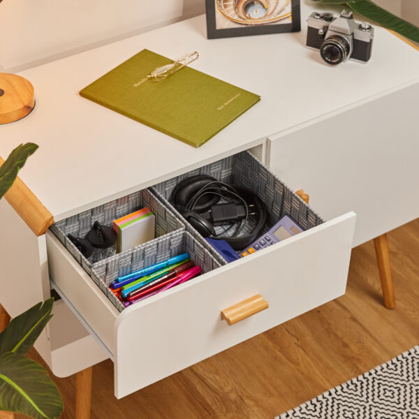 - Darbo vieta: Puikiai tinka prie rašomojo stalo, padedant organizuoti įvairius indus ir smulkmenas.
