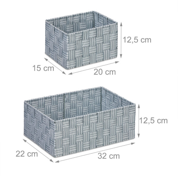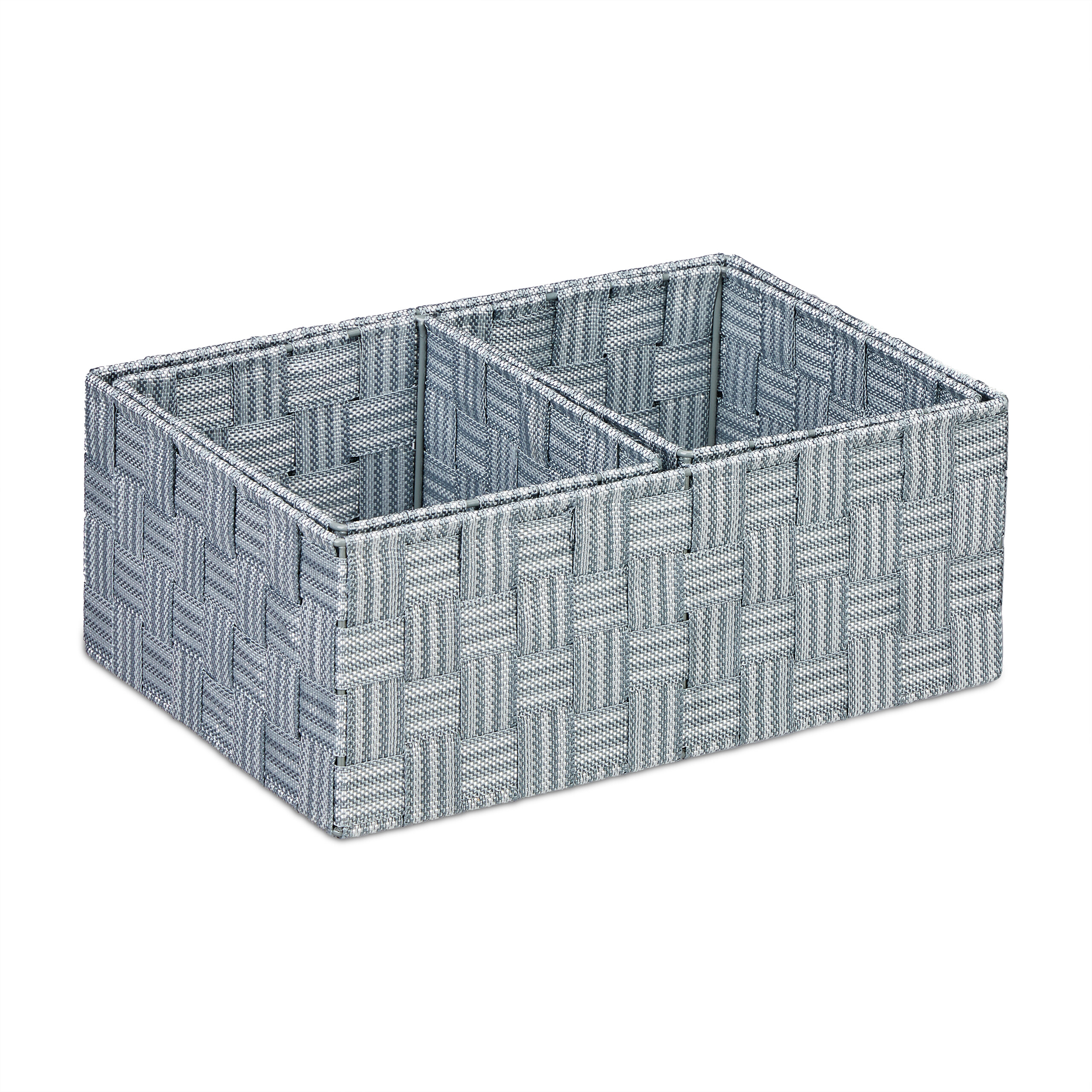 Rinkinį sudaro trys krepšeliai, kurių dydžiai leidžia laikyti įvairius daiktus jų nesumaišant. Tai suteikia galimybę efektyviai išnaudoti erdvę ir užtikrinti, kad visi jūsų daiktai būtų lengvai pasiekiami ir tvarkingai sudėti.