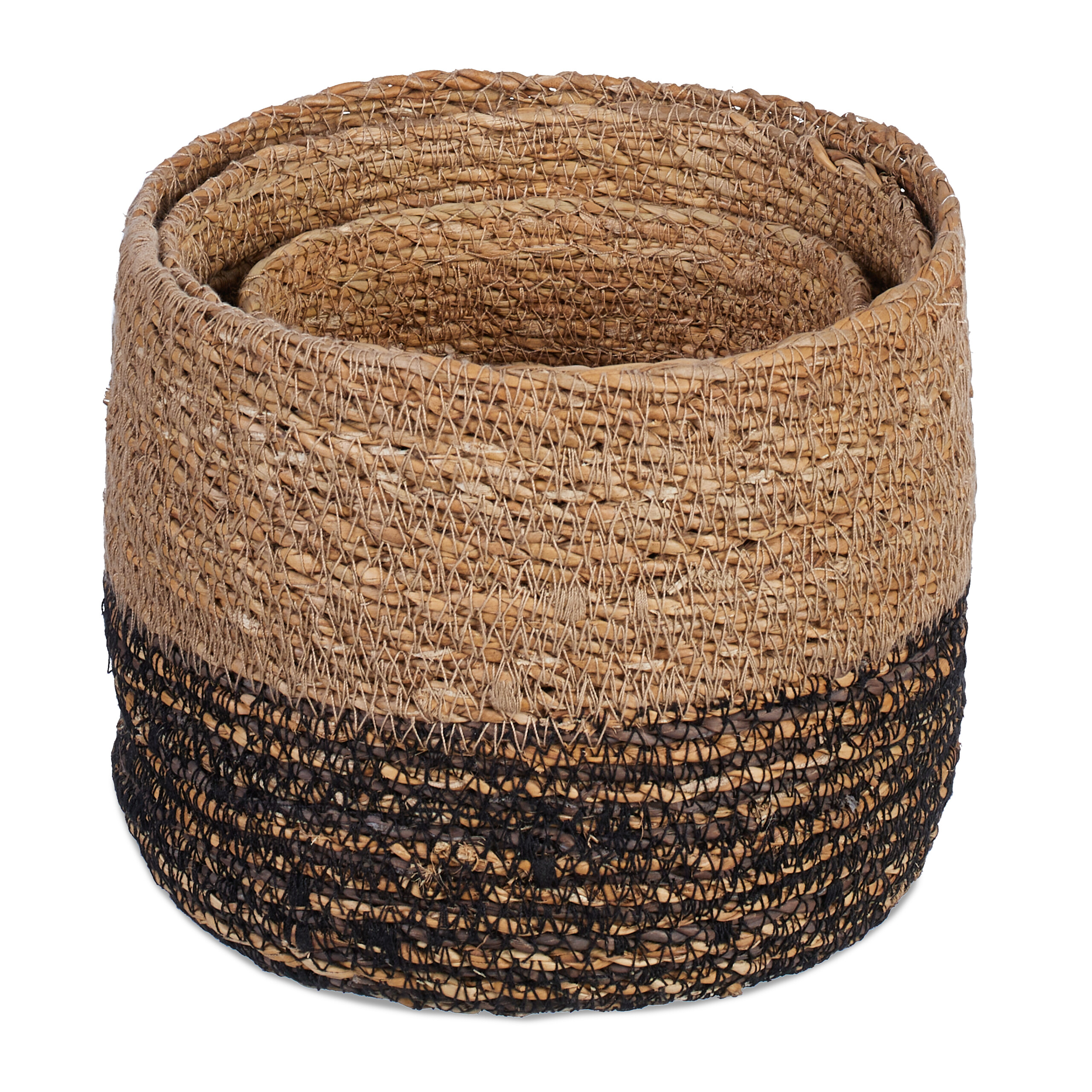 Rinkinys iš 3 krepšelių, šviesiai rudos/juodos spalvos