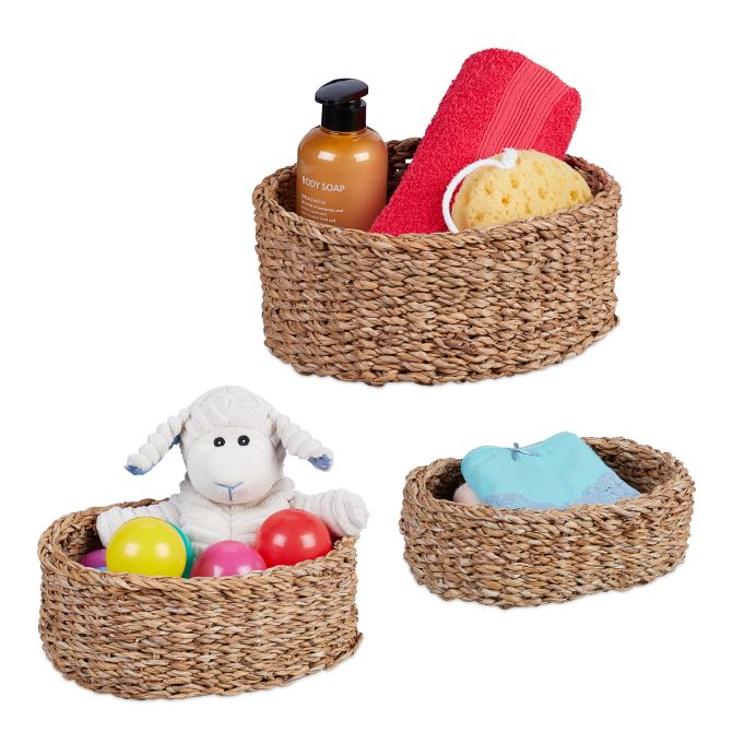 - Įvairūs dydžiai: Rinkinį sudaro trys skirtingų dydžių krepšeliai, leidžiantys tvarkingai susidėti įvairius daiktus.