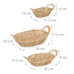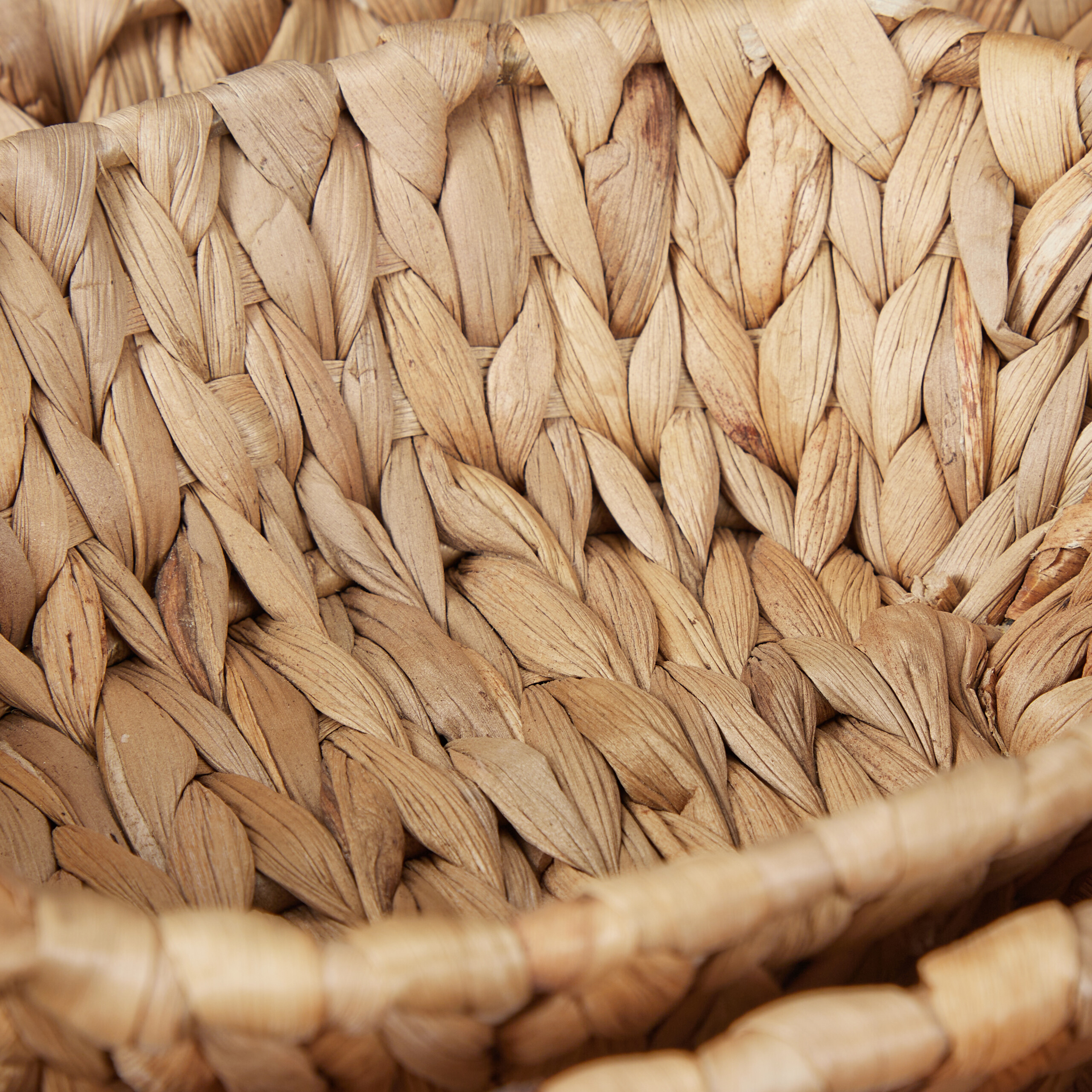 Pristatome jums elegantišką ir funkcionalų sprendimą jūsų namų organizavimui – rinkinį iš 3 dekoratyvinių krepšelių, pagamintų iš natūralaus vandens hiacinto. Šie šviesiai rudos spalvos austi krepšeliai ne tik padės palaikyti tvarką, bet ir suteiks jūsų interjerui boho stiliaus akcentą.