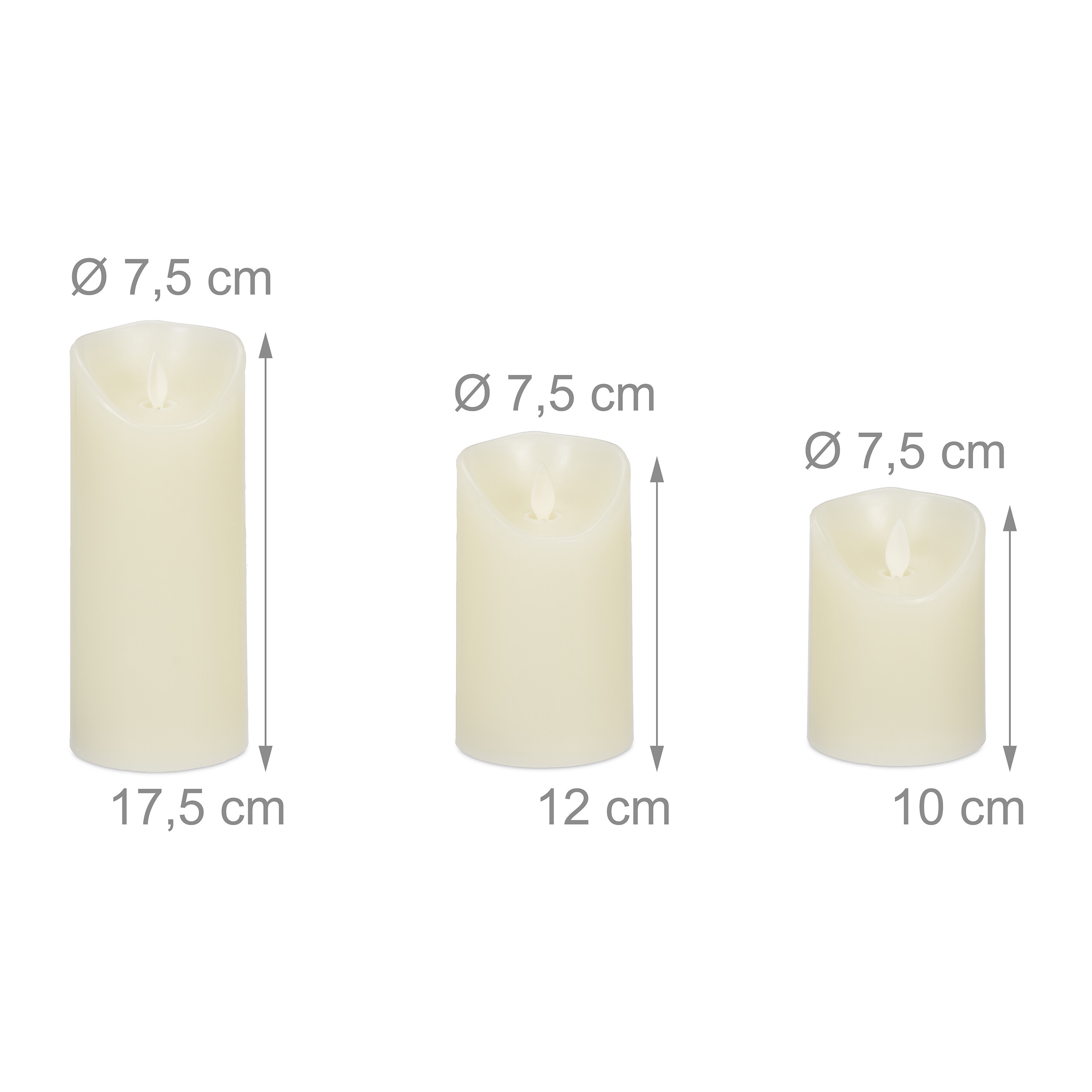 Rinkinys iš 3 LED žvakių, kreminės spalvos