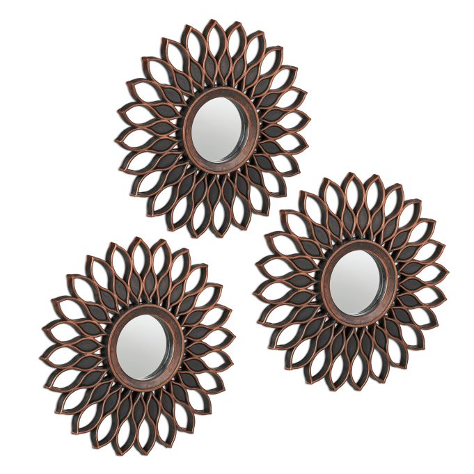 Rinkinys iš 3 Pakabinamų Veidrodžių 24x2cm, Vario/Juodos Spalvos