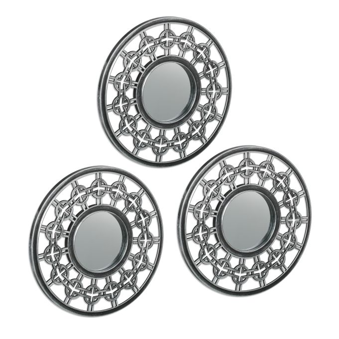 Rinkinys iš 3 Pakabinamų Veidrodžių 25×1,5 cm – Tamsiai Pilkos/Sidabrinės Spalvos