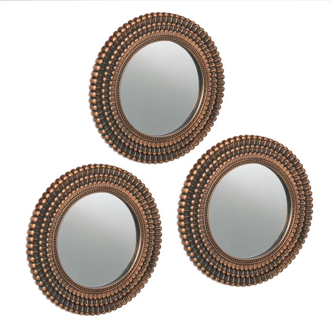 Rinkinys iš 3 pakabinamų veidrodžių 25x2cm., auksinės/juodos spalvos