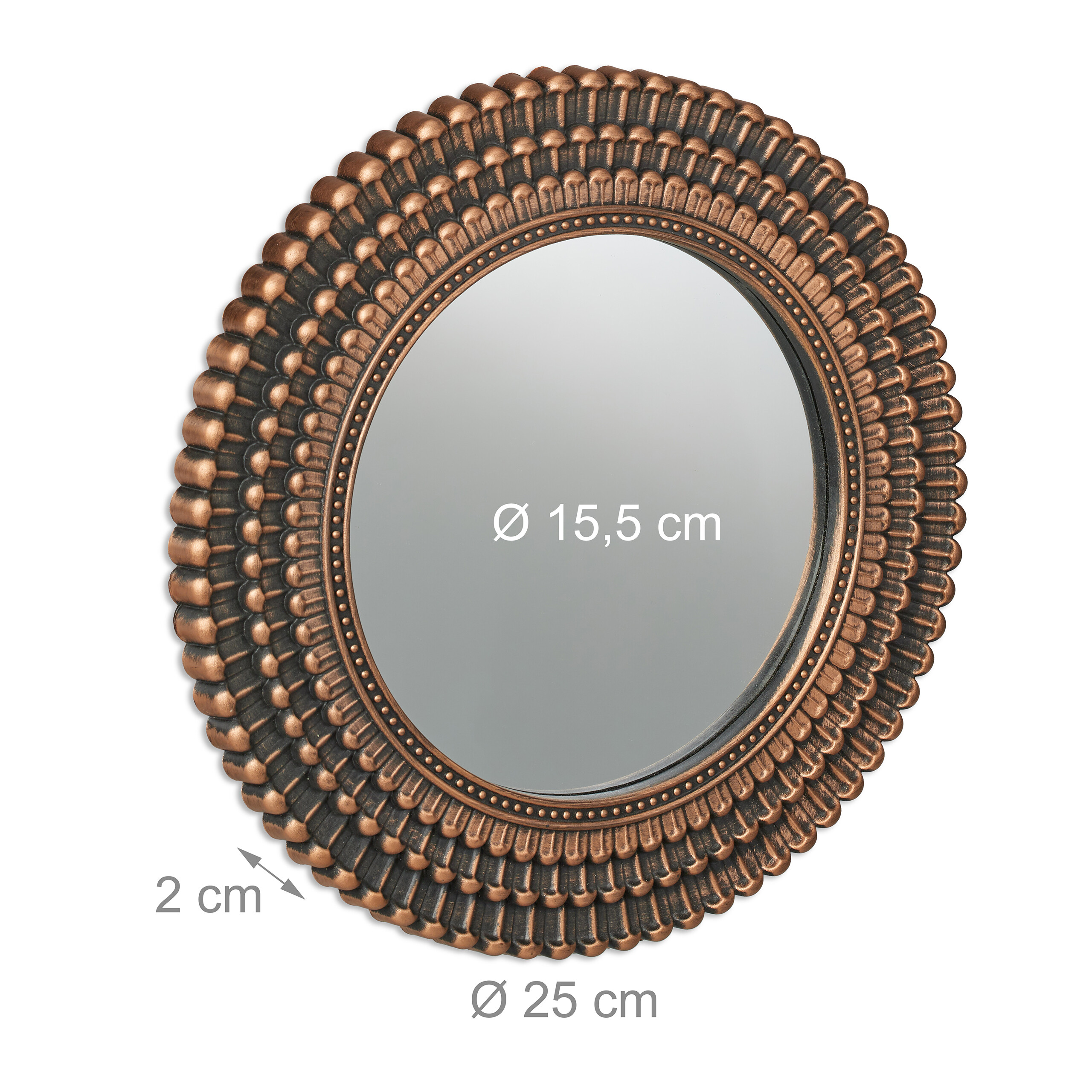 • Matmenys: Kiekvieno veidrodžio skersmuo yra 25 cm, o storis – 2 cm.