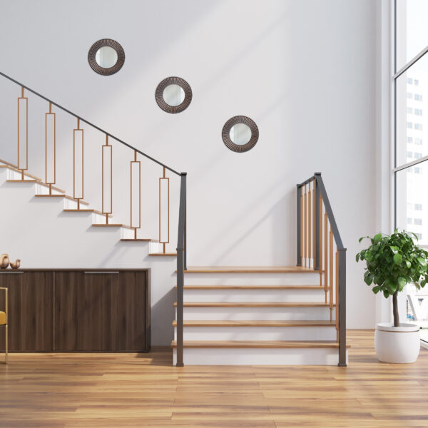 - Universalumas: Veidrodžius galite kabinti atskirai ant skirtingų sienų arba sukurti įspūdingą kompoziciją, kabindami juos kartu.