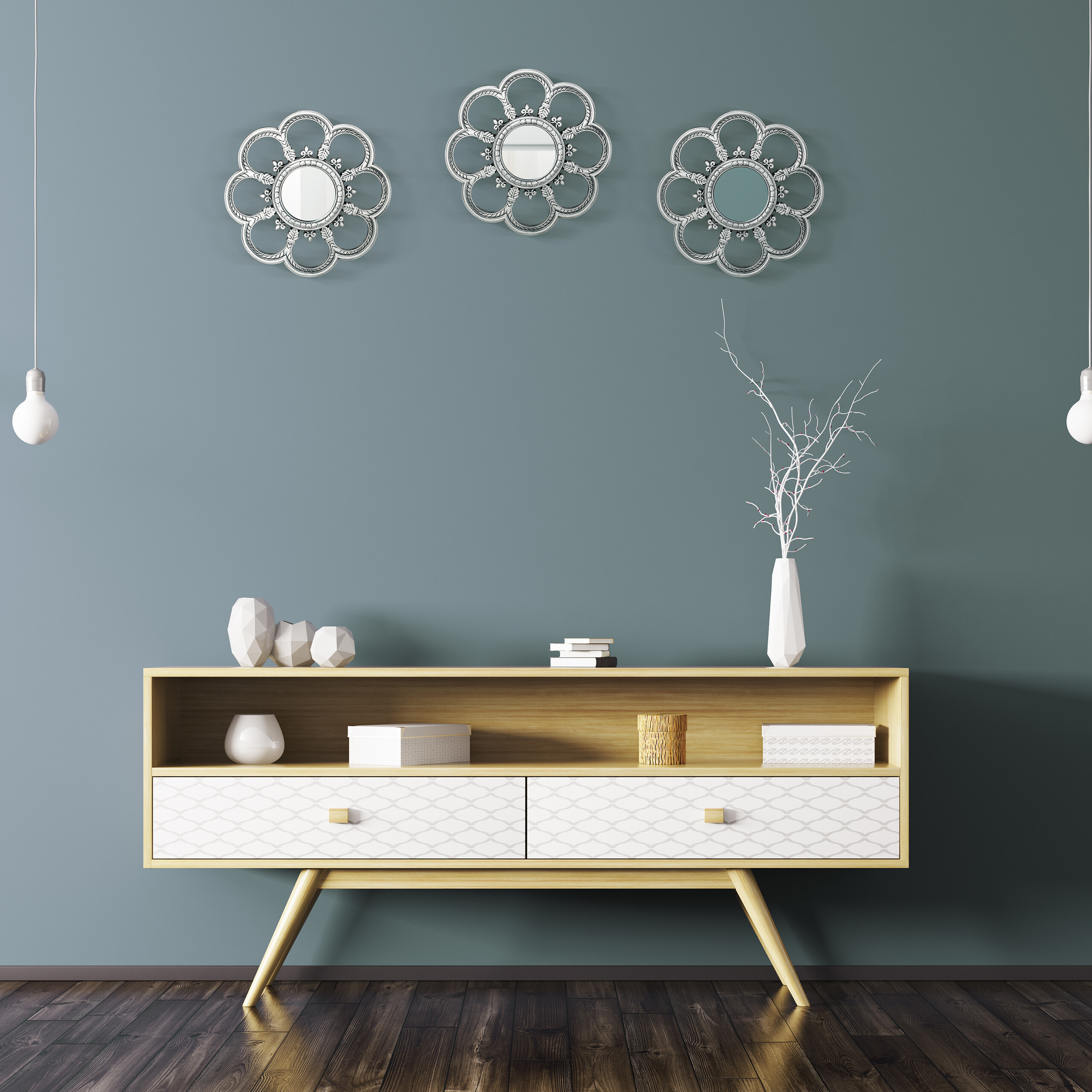 Įneškite elegancijos ir stiliaus į savo namus su šiuo išskirtiniu trijų pakabinamų veidrodžių rinkiniu. Šie dekoratyviniai veidrodžiai ne tik pagyvins jūsų interjerą, bet ir suteiks jam unikalumo. Puikiai tinka bet kuriam kambariui – nuo prieškambario iki svetainės ar miegamojo.