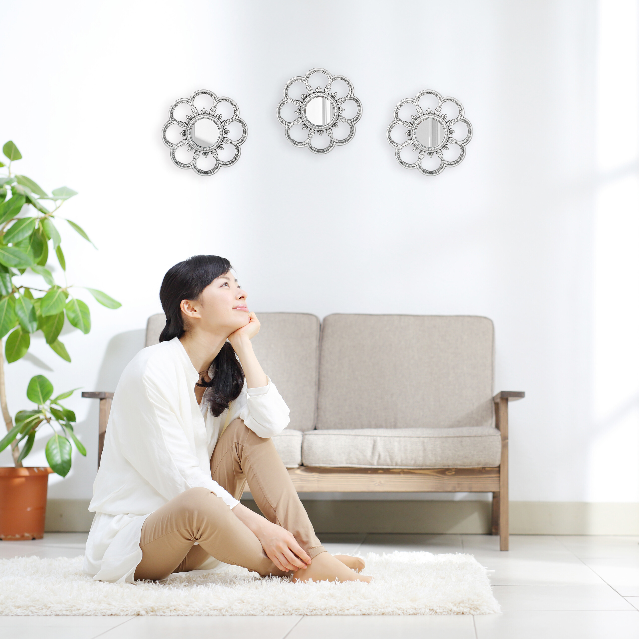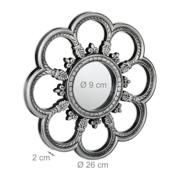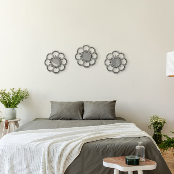 - Akį traukiantis stilius: Neįprastas gėlių formos dizainas suteikia veidrodžiams išskirtinumo ir tampa puikiu akcentu jūsų interjere.