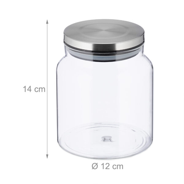 Pristatome elegantišką ir funkcionalų rinkinį iš 3 skaidrių indelių, skirtų biriems produktams laikyti. Šie apvalūs stikliniai indai, kurių kiekvieno talpa yra 1.1 litro, puikiai tiks jūsų virtuvei, suteikdami jai modernų ir tvarkingą įvaizdį. Indelių matmenys yra 14×12 cm, o jų sidabrinės spalvos dangteliai suteikia papildomo žavesio.