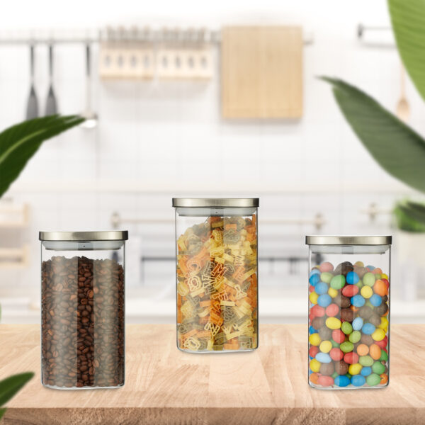 - Estetika: Skaidrus dizainas leidžia lengvai matyti turinį, o pripildyti indai tampa stilingu virtuvės akcentu.