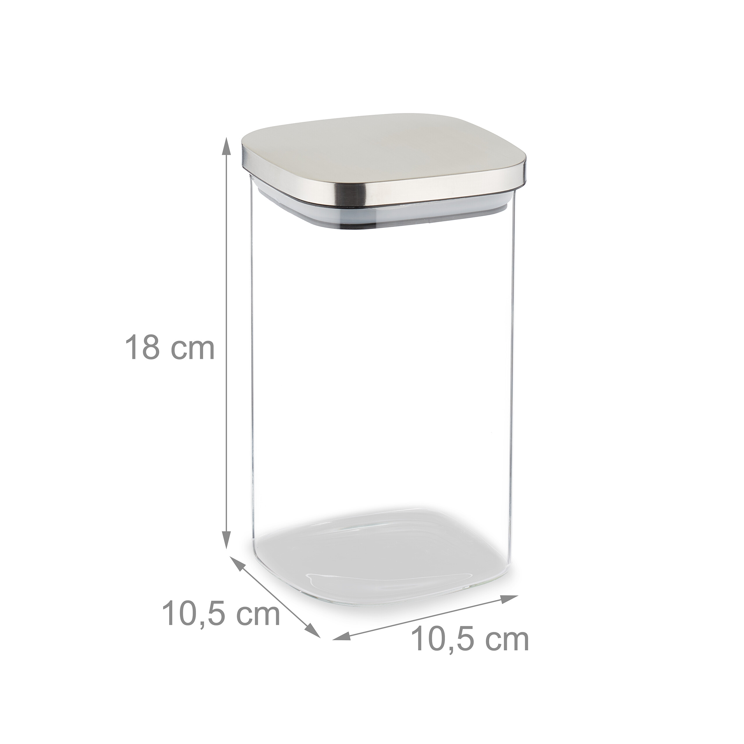 Pristatome elegantišką ir funkcionalų rinkinį iš 3 skaidrių indelių, skirtų biriems produktams laikyti. Šie kvadratiniai stikliniai indai yra puikus pasirinkimas tiems, kurie nori tvarkingai ir stilingai organizuoti savo virtuvę. Kiekvienas indelis yra 18×10,5×10,5 cm dydžio ir talpina iki 1.2 litrų, o jų sidabrinės spalvos dangteliai suteikia modernų akcentą.