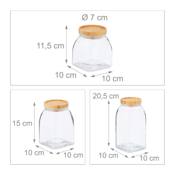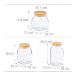 - Bambukinis dangtis: Kiekvienas indelis turi dekoratyvinį bambuko dangtelį, kuris suteikia natūralų ir šiltą akcentą.