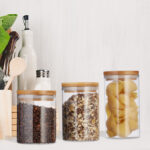 - Bambukinis Dangtelis: Kiekvienas indelis turi bambukinį dangtelį su guminiu žiedu, kuris užtikrina sandarumą ir šviežumą.