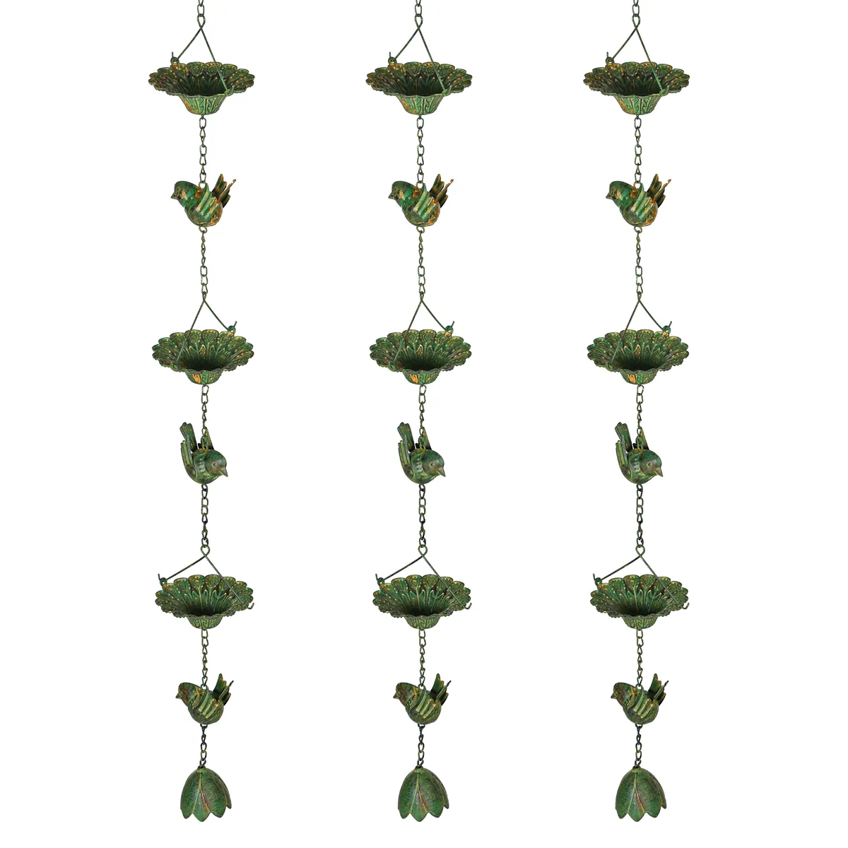 Pagražinkite savo sodą su trimis Outsunny lietaus grandinėlių rinkiniu, papuoštu kolibriais, gėlių dubenimis ir lotoso varpeliu. Pagamintos iš korozijai atsparaus metalo, šios lietaus grandinės elegantiškai sulaiko ir nukreipia lietaus vandenį bei praturtina jūsų lauko zoną harmoningais garsais. Lengvai surenkami, jie siūlo žavingą priedą jūsų latakams su lotoso varpeliu.