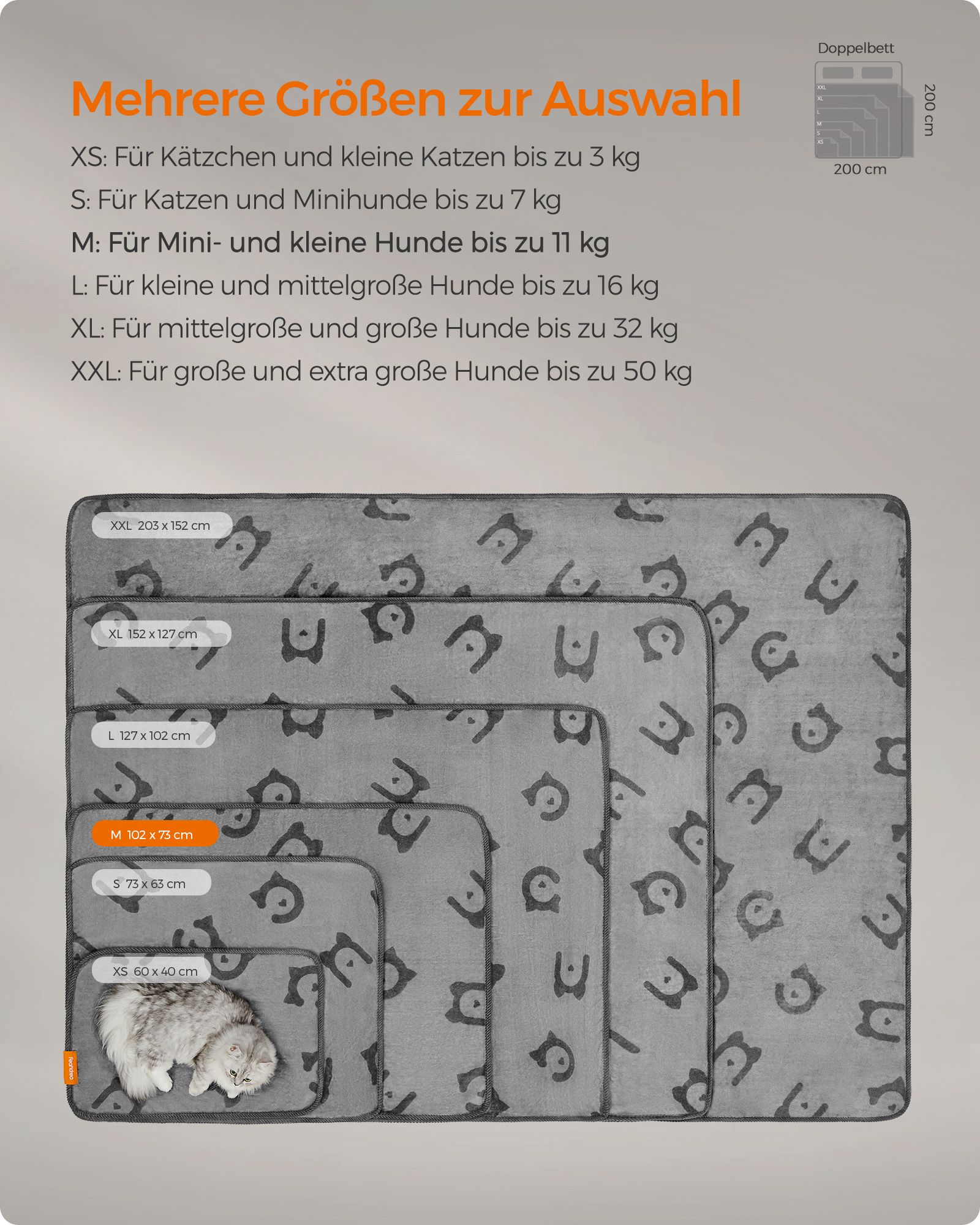 Dydis: 102 x 73 cm – pakankamai didelė, kad tiktų įvairių dydžių šunims.