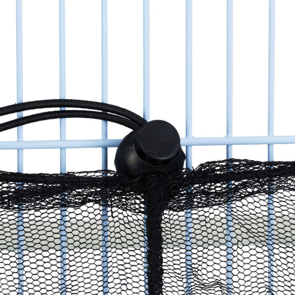 - Universalus dydis: Reguliuojama guminė virvelė leidžia tinkleliui prisitaikyti prie įvairių narvų dydžių, užtikrinant patogų ir saugų pritaikymą.