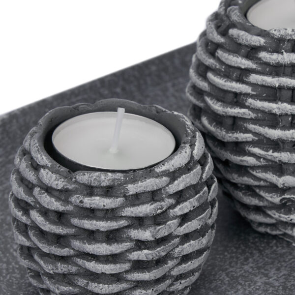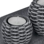 - Stilingas dizainas: Tamsiai pilkos ir baltos spalvos derinys suteikia žvakidėms modernų ir elegantišką išvaizdą, kuri puikiai dera su įvairiais interjero stiliais.