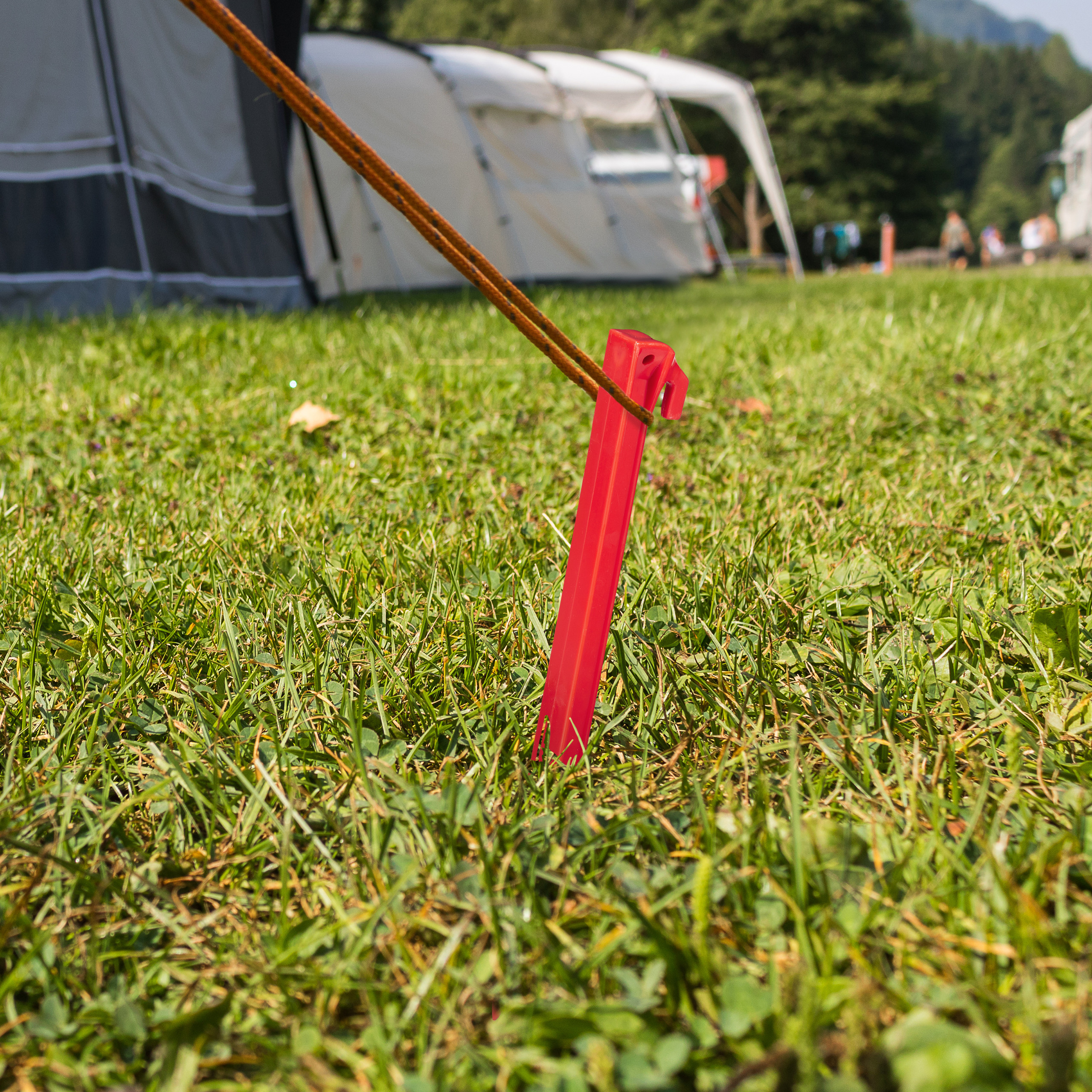- Patikimumas: Tvirti plastikiniai kuoliukai patikimai palaiko jūsų palapinės formą, net ir esant stipriam vėjui ar lietui.