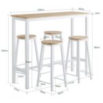 Baro stalo matmenys: ilgis 120 cm, plotis 40 cm, aukštis 100 cm. Stalas išbandytas iki 45 kg apkrovos. Kėdžių sėdimosios dalies aukštis yra 65 cm, sėdimosios dalies gylis – 30 cm, o jos išbandytos iki 150 kg apkrovos. Komplekte yra pakoja, kuri suteikia patogią atramą jūsų kojoms.