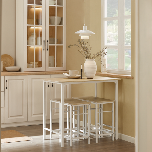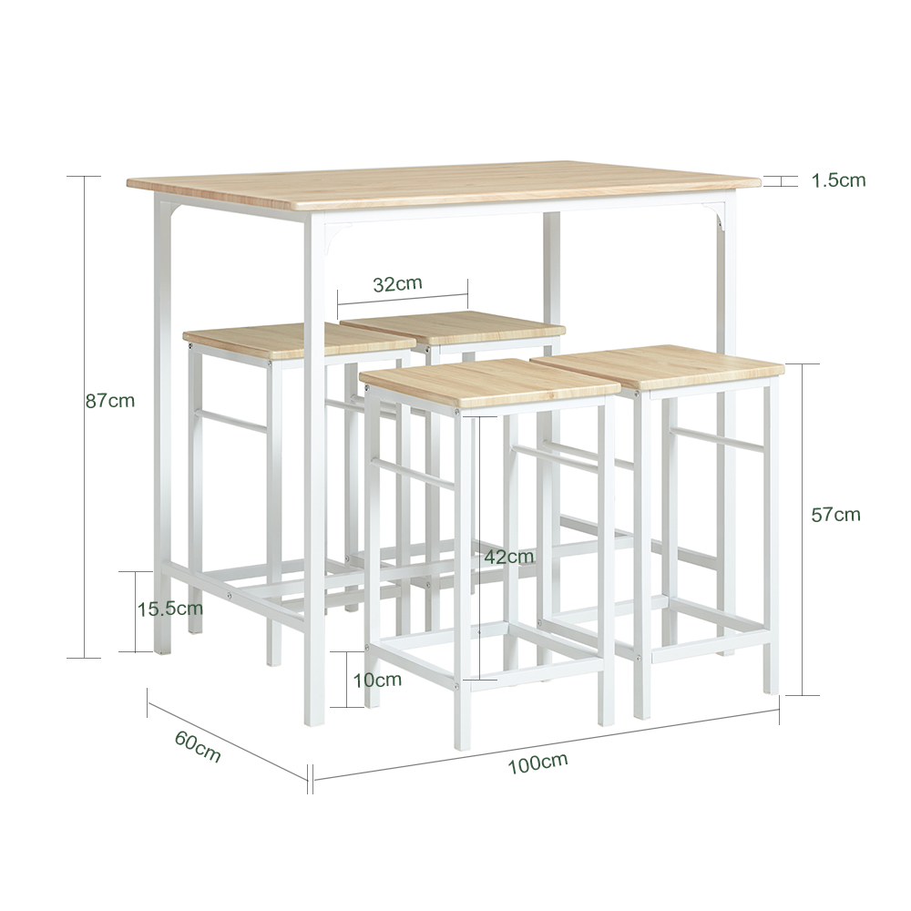 Ieškote naujo valgomojo stalo komplekto? Šis rinkinys iš 4 baro kėdžių su stalų, baltos/šviesiai rudos spalvos, puikiai tiks įvairiems interjero stiliams. Jo rustiškas paprastumas ir unikalus dizainas niekada nepasens ir puikiai derės su esamais baldais ar spalvų schemomis.