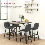 Paverskite savo erdvę kviečiančia valgomuoju su HOMCOM 5 dalių baro stalo komplektu. Šis valgomojo komplektas yra stilingas ir jaukus sprendimas kasdieniam valgymui, žaidimų vakarams ar darbo valandoms. Modernaus pramoninio dizaino valgomojo komplektas sklandžiai tinka bet kurioje patalpoje ir sukuria šiltą atmosferą. Idealiai tinka mažoms erdvėms, suteikia papildomos sėdimos vietos ir paverčia jūsų namus bendravimo ir atsipalaidavimo vieta.