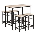 Šis paprastas ir tvirtas rinkinys iš 4 baro kėdžių su stalų, juodos/šviesiai rudos spalvos, yra puikus pasirinkimas jūsų pusryčių kampeliui ar mažesnei valgomojo erdvei. Stalas yra itin stabilus dėl metalinio pagrindo, o jo stilingas ir paprastas dizainas puikiai tinka naudoti restoranuose, kavinėse ar biurų susitikimų kambariuose.