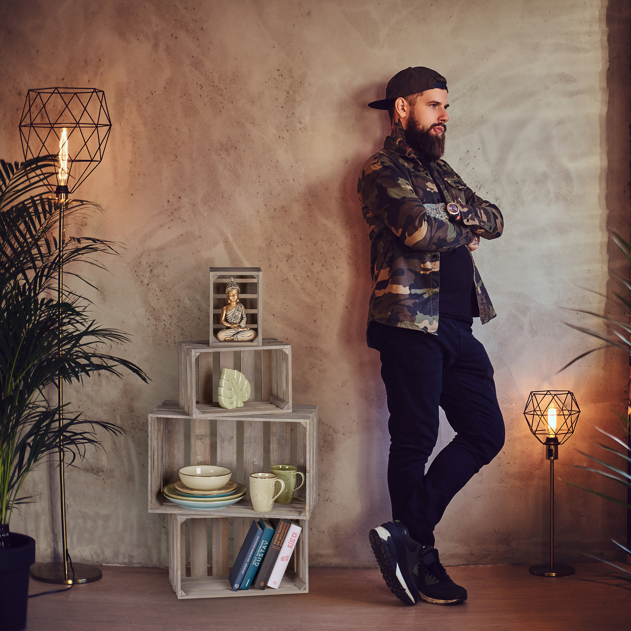 Įneškite unikalumo ir funkcionalumo į savo namus su šiuo dekoratyvinių daiktadėžių rinkiniu. Šios pilkos spalvos dėžės puikiai dera su kaimiškais mediniais laiptais, suteikdamos jūsų interjerui išskirtinį žavesį. Leiskite savo fantazijai laisvai kurti ir atraskite begalines galimybes, kaip šias dėžes panaudoti.