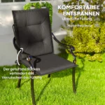 Patobulinkite savo sėdėjimą lauke naudodami Outsunny kėdžių pagalvėles, įskaitant atlošus. Kiekvienos kėdės pagalvėlės poliesterio užvalkalas yra nekenksmingas odai, atsparus UV spinduliams ir lengvai valomas. Jie užpildyti labai elastingomis putomis, kad būtų užtikrintas maksimalus komfortas, o juostelės yra saugiai pritvirtintos prie kėdžių. Kuokštuotos nugarėlės išlaiko įdarą vietoje. Su šiomis sėdynių pagalvėlėmis padidinate ir komfortą, ir stilių.