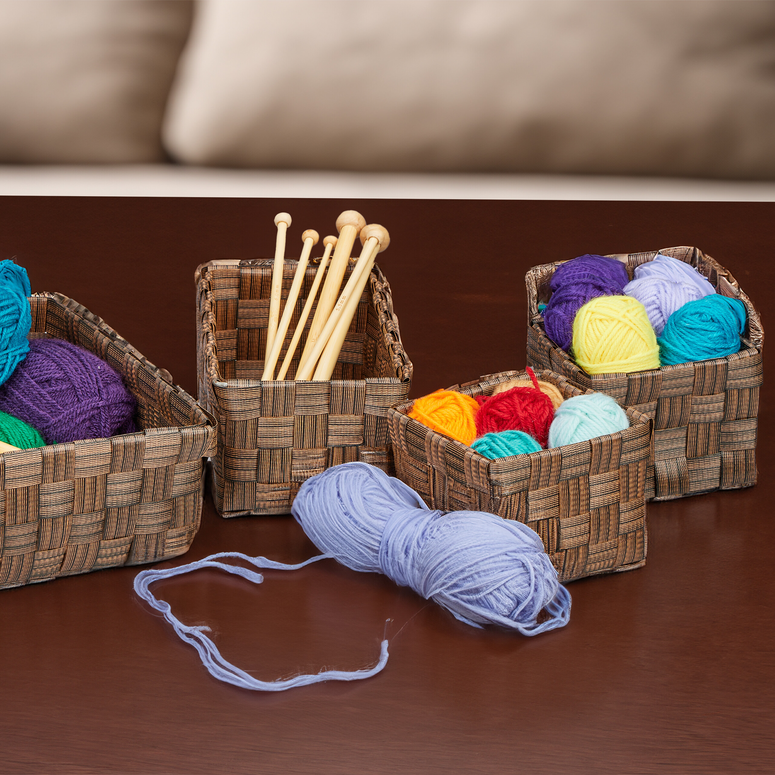 Rinkinys iš 4 krepšelių, rudos spalvos