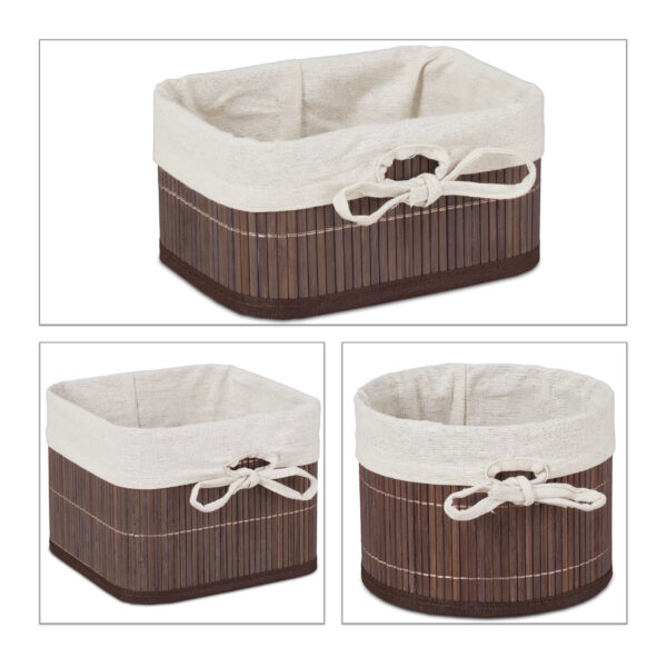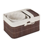 - Spalva: Tamsiai ruda ir balta – šis derinys suteikia krepšeliams modernų ir estetišką išvaizdą, kuri puikiai dera su įvairiais interjero stiliais.